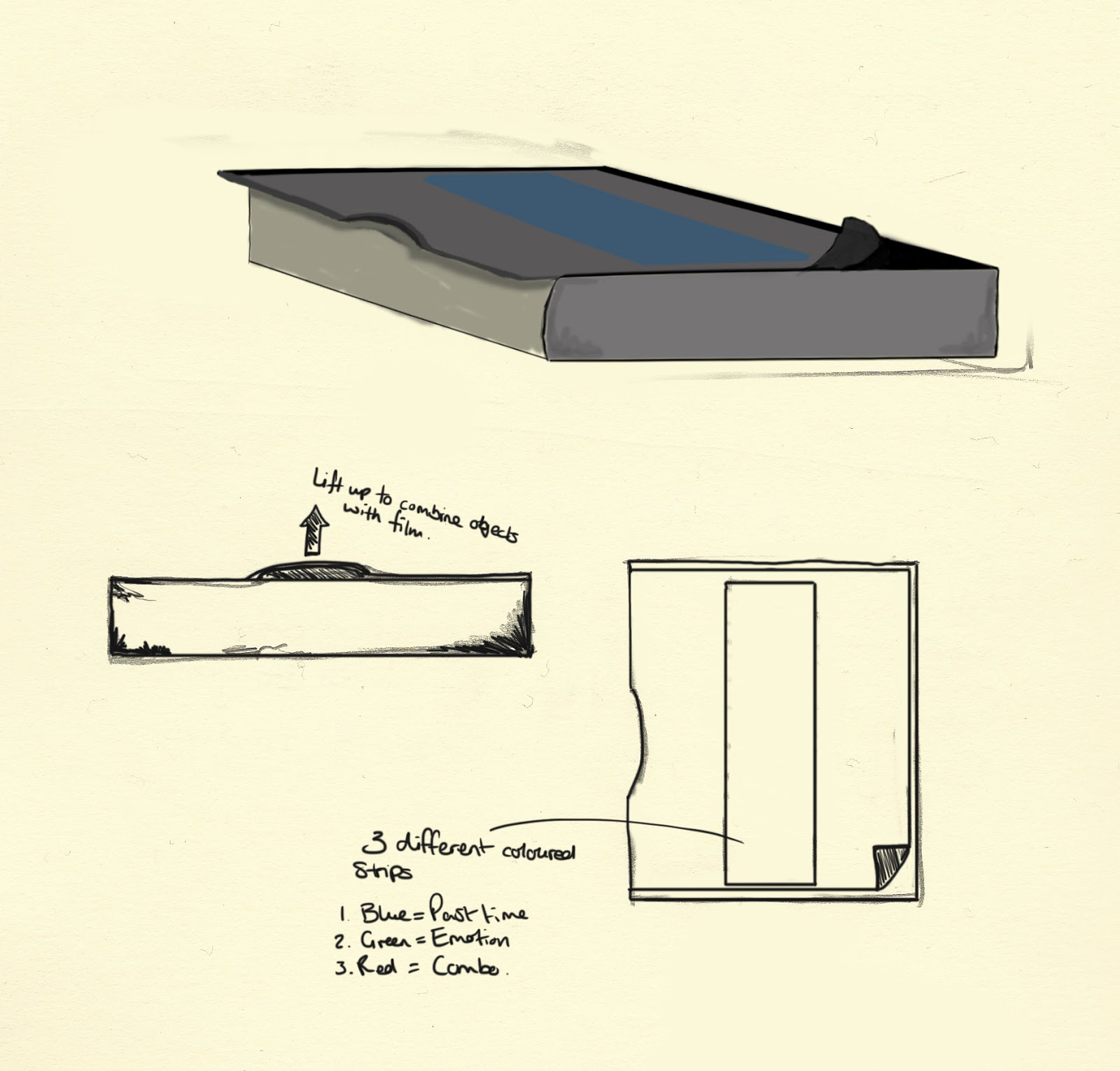 1. Past time film - this allows the player to take a photo of say a room and then see if there is any items in which it can help the player to solve the puzzle, for this I felt that the overall design of the film should stay very basic, it's a tub that hold the film with a flap that will pull away to the reveal the film beneath On top there is a stripe, this stripe will indicate what type of film it is. Past time film will have a blue stripe.